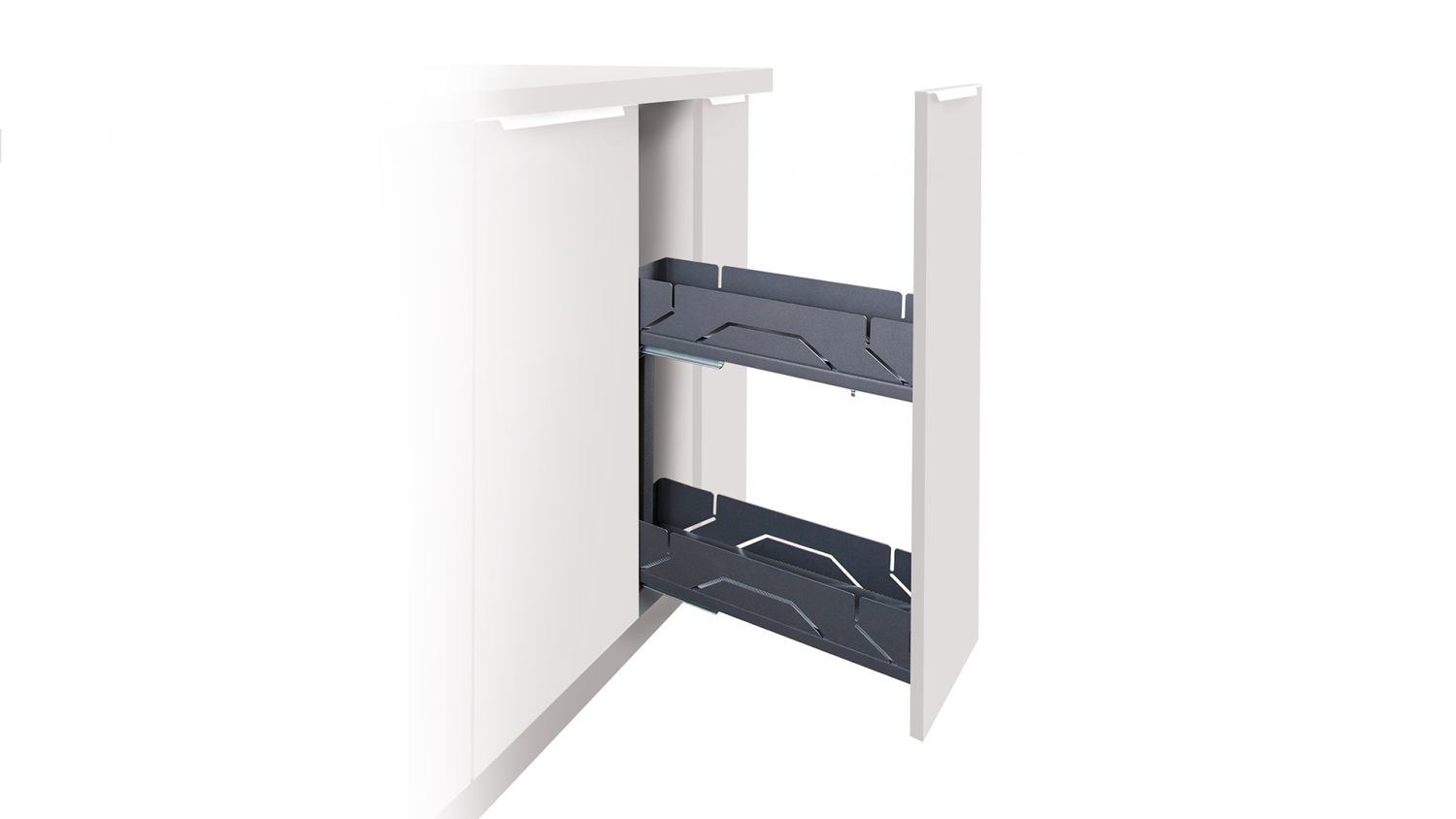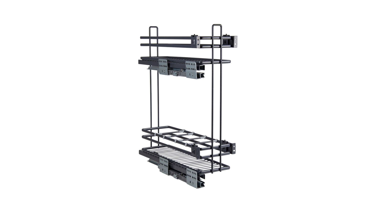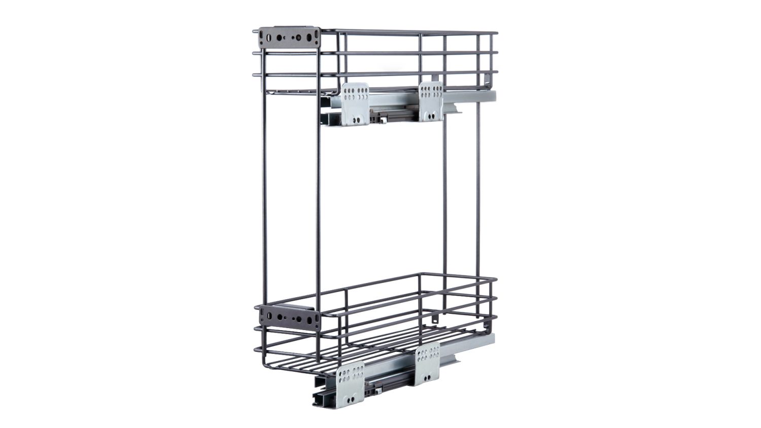 Выдвижная корзина FLORA 2-х ур. с боковым крепл. с доводчиком, левая, 150мм, ГРАФИТ KR05/1/3/150/L/GRPH