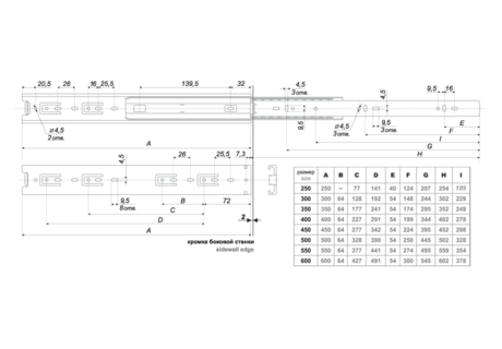 КАТАЛОГ ТОВАРОВМебельная фурнитура Мойки кухонные Столешницы и комплектующие Профиль Алюминиевый Бытовая техника Oasis Комплектующие для шкафов Компакт-плита HPL Универсальная фурнитура ЛДСП/МДФ Мебельное освещение / розетки Опоры и подстолье Ручка профиль GOLA Система Joker Цокольные системы0КАТАЛОГ ТОВАРОВКАТАЛОГ ТОВАРОВВладивостокВыберите ближайший к Вам складМебельная фурнитура>Ящики и направляющие>Комплект направляющих шариковых, цинк, L=550мм, (до 25кг) DB4501Zn/550Комплект направляющих шариковых, цинк, L=550мм, (до 25кг) DB4501Zn/550ХарактеристикиОписаниеДлина (мм) 550 ммШирина (мм) 45 ммАртикул 25785Базовая единица штСпособ работы Без доводчикаНаправляющие шариковые для выдвижных ящиков. Телескопический механизм полного выдвижения, с упором и защитой от выкатывания.