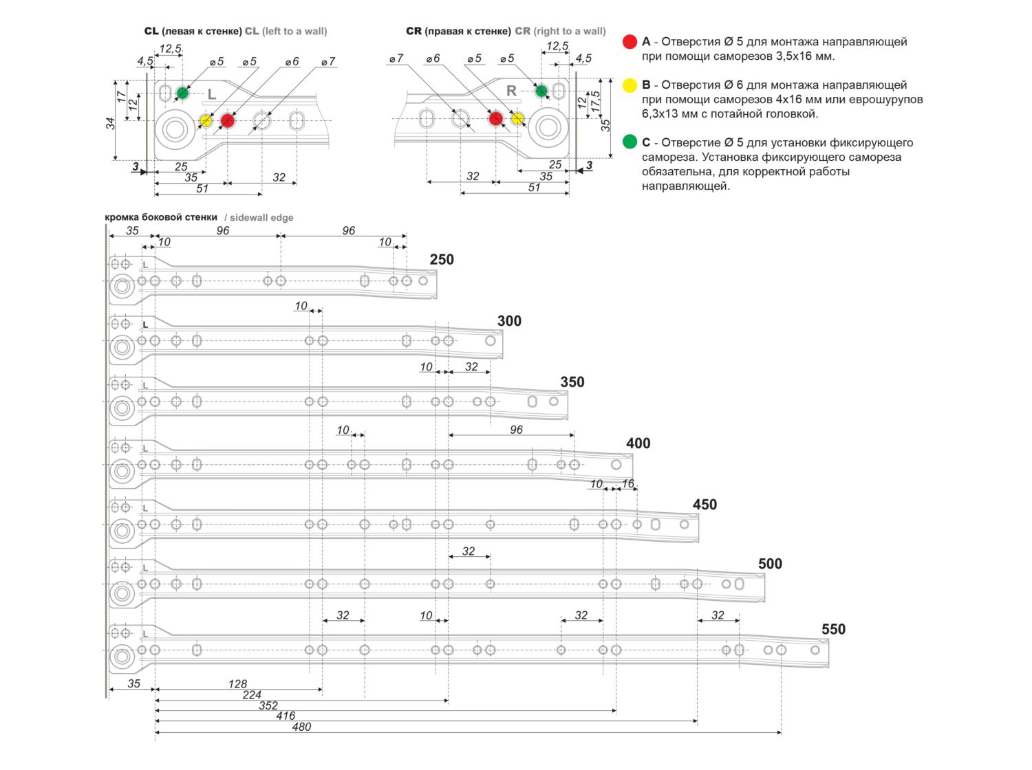 Монтажная длина: 550 мм