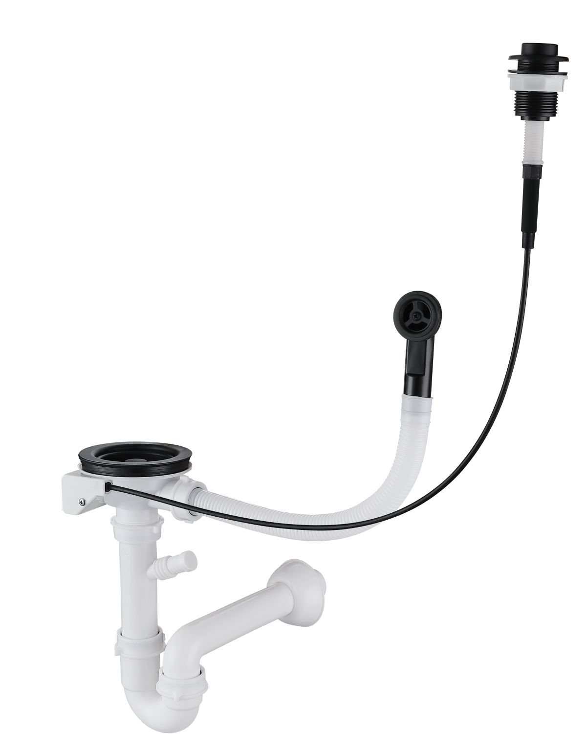 GRANFEST Сифон двойной 3 1/2" черный п/авт с круглым переливом и отводом арт. GF-13G14PB4-P2A п/авт черн