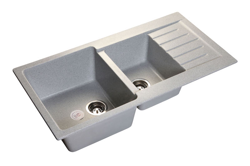 GRANFEST Мойка мрамор PRACTIC GF-P980KL 2-х чашевая с крылом 980*510мм Серая П/ЗАКАЗ