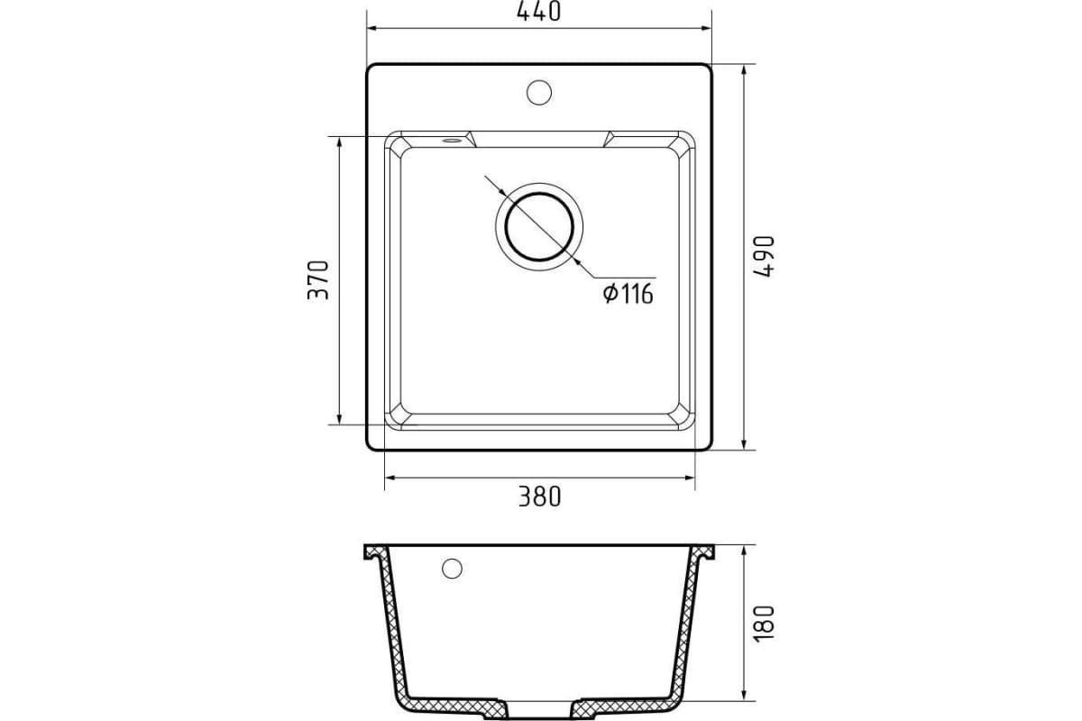 Размер чаши: 380 х 370 х 180 мм