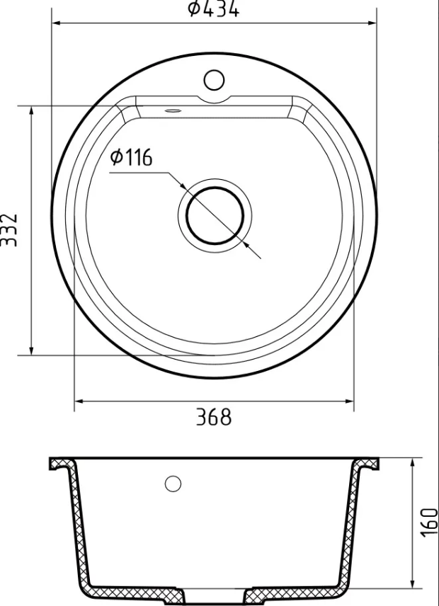 Размер чаши: 368*332*160 мм
