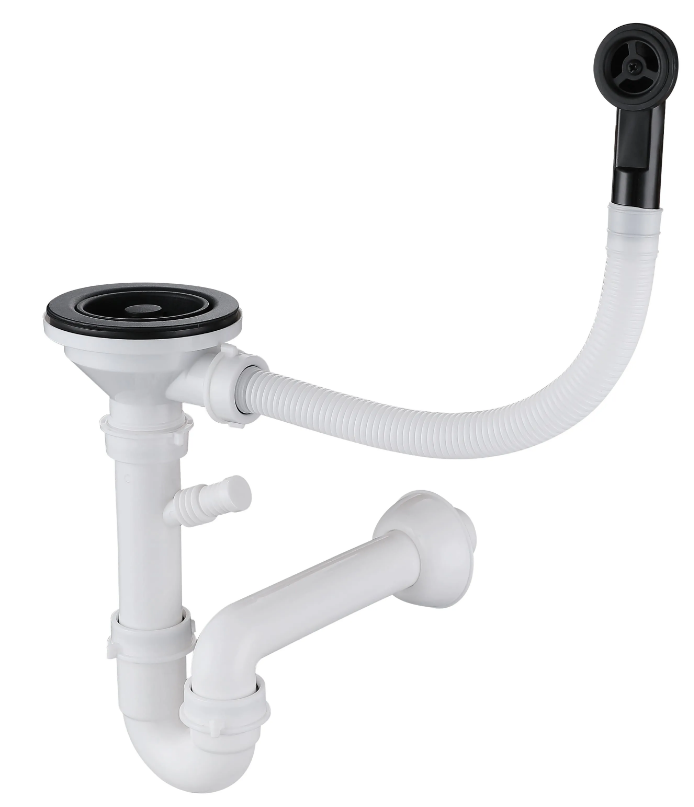 Сифон двойной Санпласт GRAND с круглым переливом и отводом(пласт) + гофра - для моек QUARZ