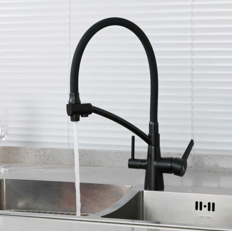 G4398-16 Смеситель для кухни Gappo G98 черный с подключением фильтра ч. в. и гибким изливом