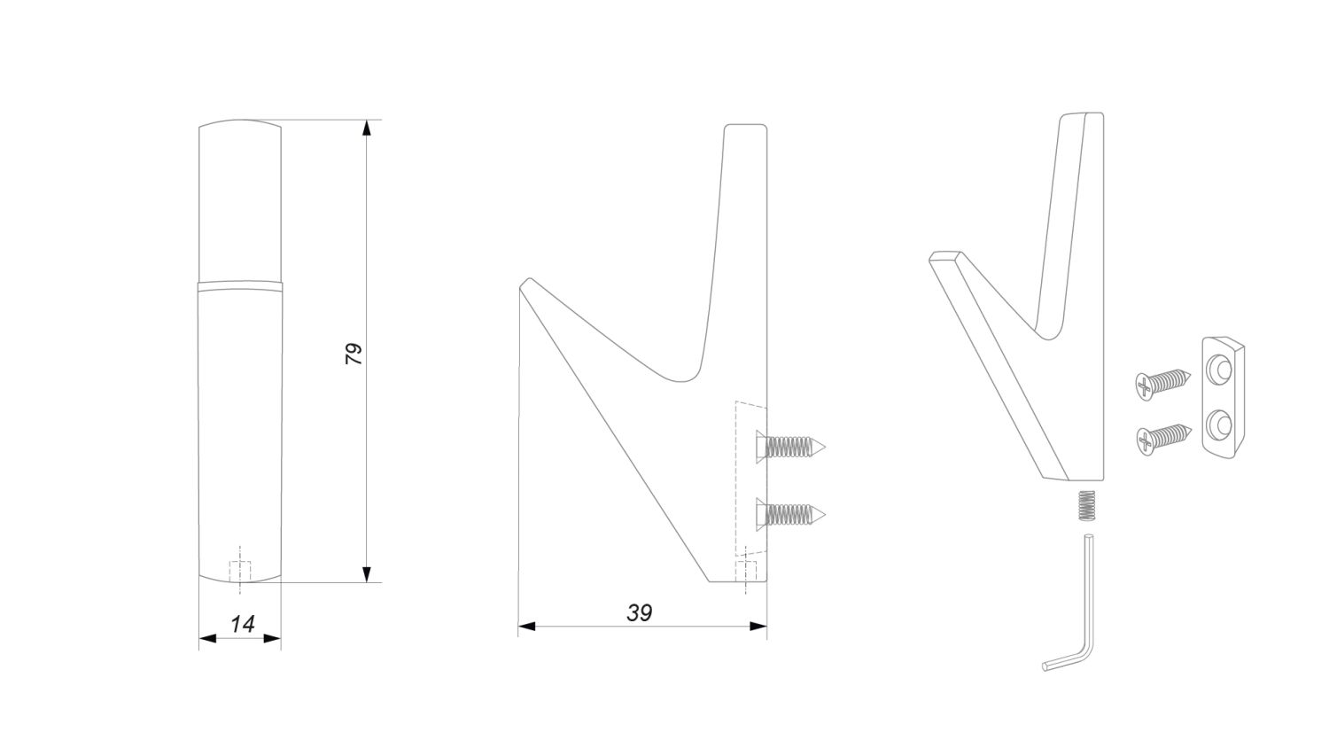 Монтаж крючка достаточно прост и обеспечивает плотную установку, исключая соскальзывание в любой ситуации: крепление планки к мебели производится с помощью саморезов, а затем на неё надевается крючок при помощи винта, без каких-либо следов установки.