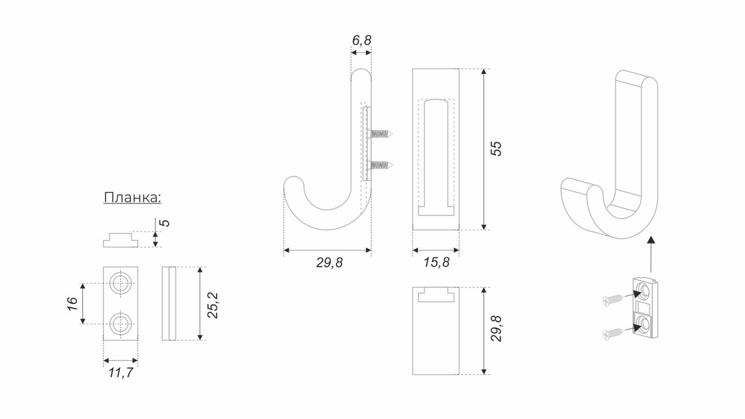 Монтаж крючка достаточно прост: