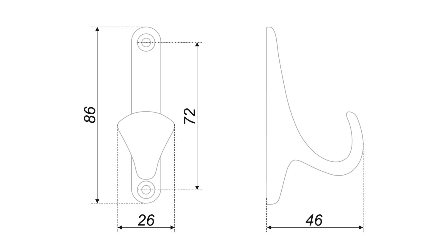 Крючок эргономичен, его загнутая форма позволяет надёжно удерживать предметы одежды. Дополнительную эстетику внешнего вида крючка и вашей мебели создают силиконовые заглушки на саморезы, которые входят в комплект. Допустимая нагрузка: до 10 кг