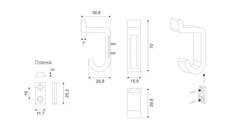 Стальная планка устанавливается на плиту стрелкой вверх и крепится двумя саморезами (входит в комплект).