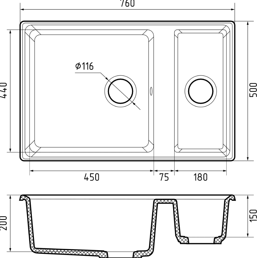 Мойка кухонная GranFest Level GF-LV-760L серая