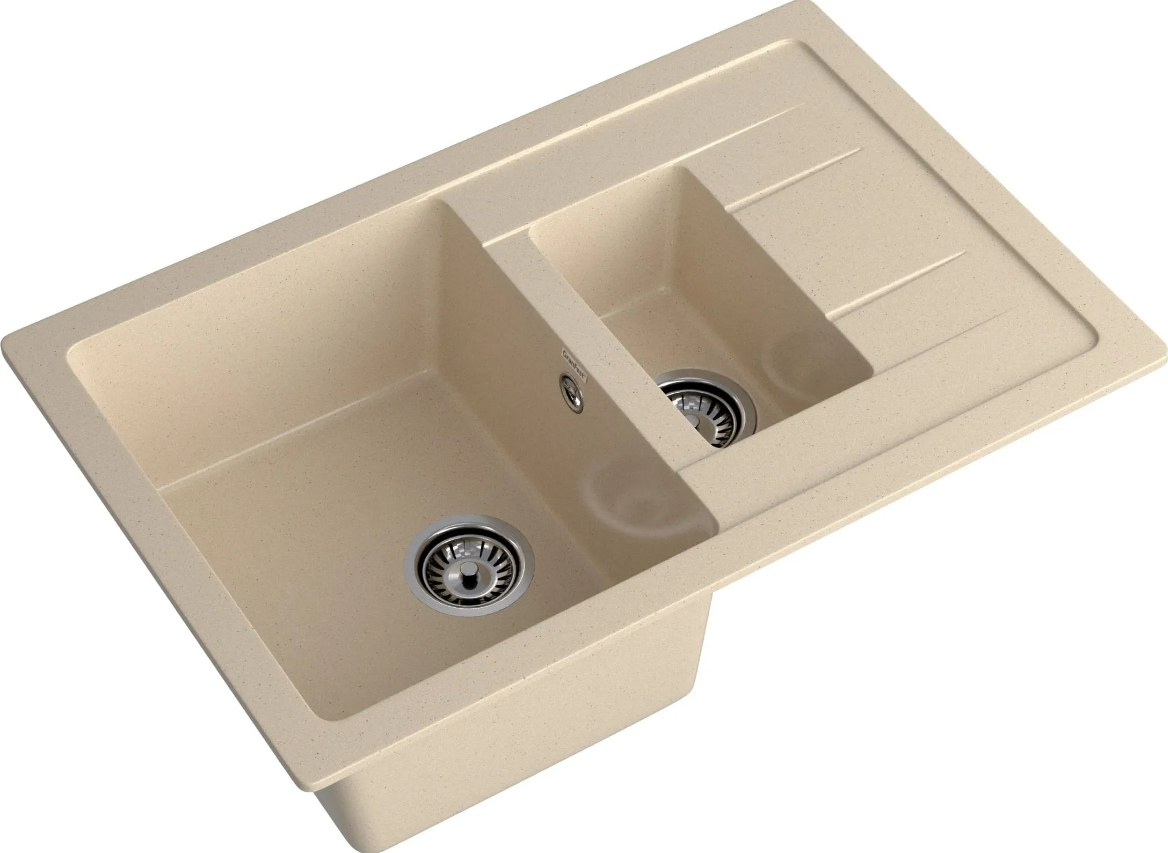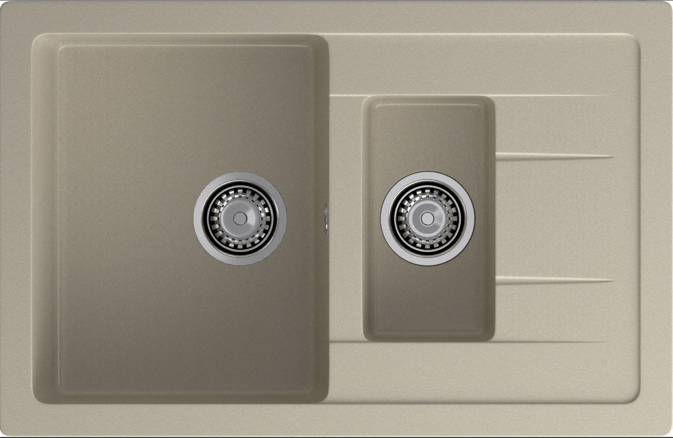 GRANFEST Мойка мрамор QUADRO GF-Q775KL (F-21К) 2-х чашевая +крыло 770*495мм Кашемир (БЛ) П/ЗАКАЗ